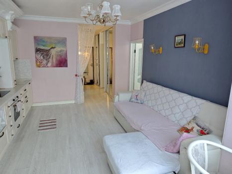 Однокомнатная светлая квартира с кухней-гостиной и панорамными окнами на площади Станиславского.