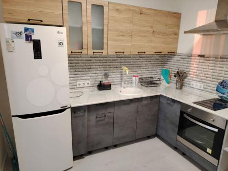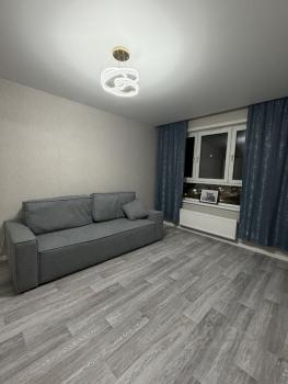 В квартире выполнен евро ремонт. Просторная кухня площадью 9 м² оснащена необходимой бытовой техникой, включая холодильник. В комнате установлен вместительный шкаф для хранения вещей.