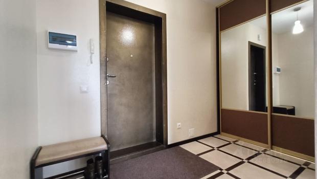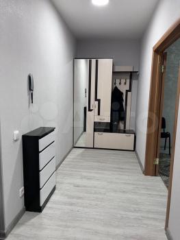 Квартира расположена на 20 этаже из 27, оснащена тремя пассажирскими и тремя грузовыми лифтами. В квартире выполнен свежий евро ремонт. Просторная кухня оборудована холодильником, микроволновой печью, духовкой, чайником. Так же есть стиральная машина. Из мебели — большой диван, вместительный шкаф, обувница и комод. Так же обеденный стол с современными стульями.