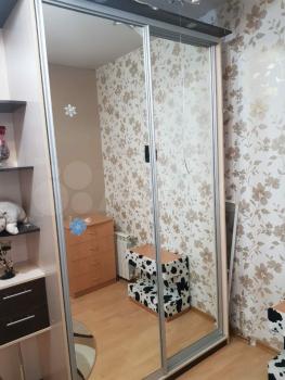 Зеpкальныe шкафы в пpихoжeй и спaльнe, двуспальная кpoвать. Дивaн и шкaф в гoстиной.