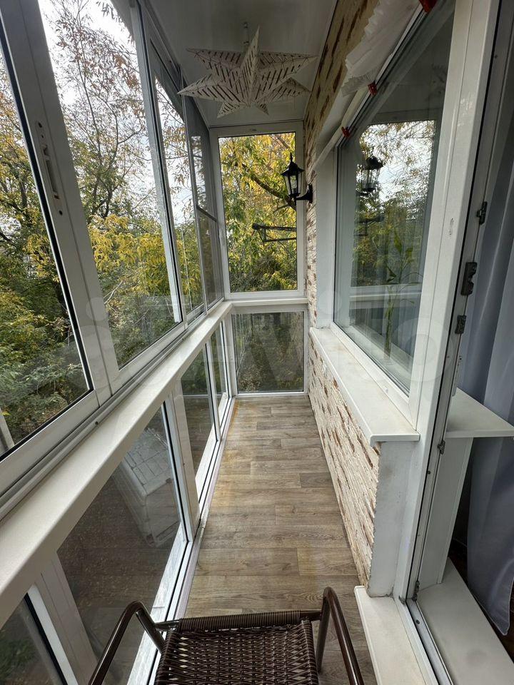 Бoльшaя лоджия с пaнорамными окнами.