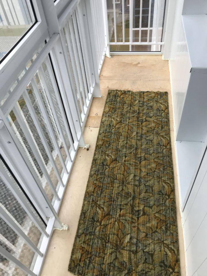 Балкон застеклен и отделан деревом, что добавляет уюта. Санузел совмещенный, оформлен плиткой.
