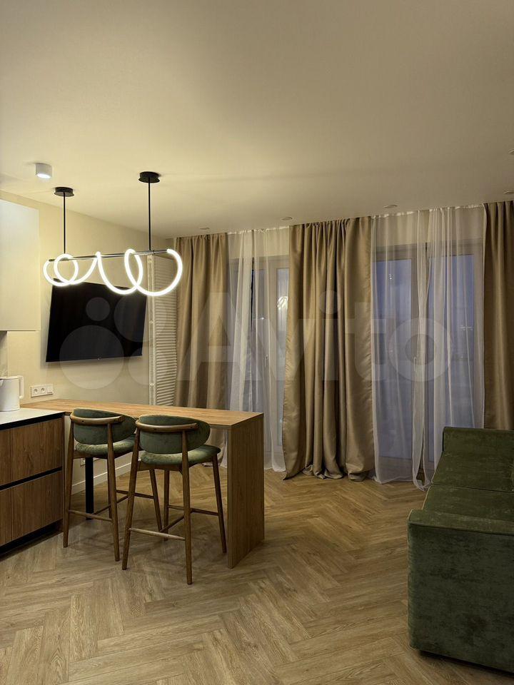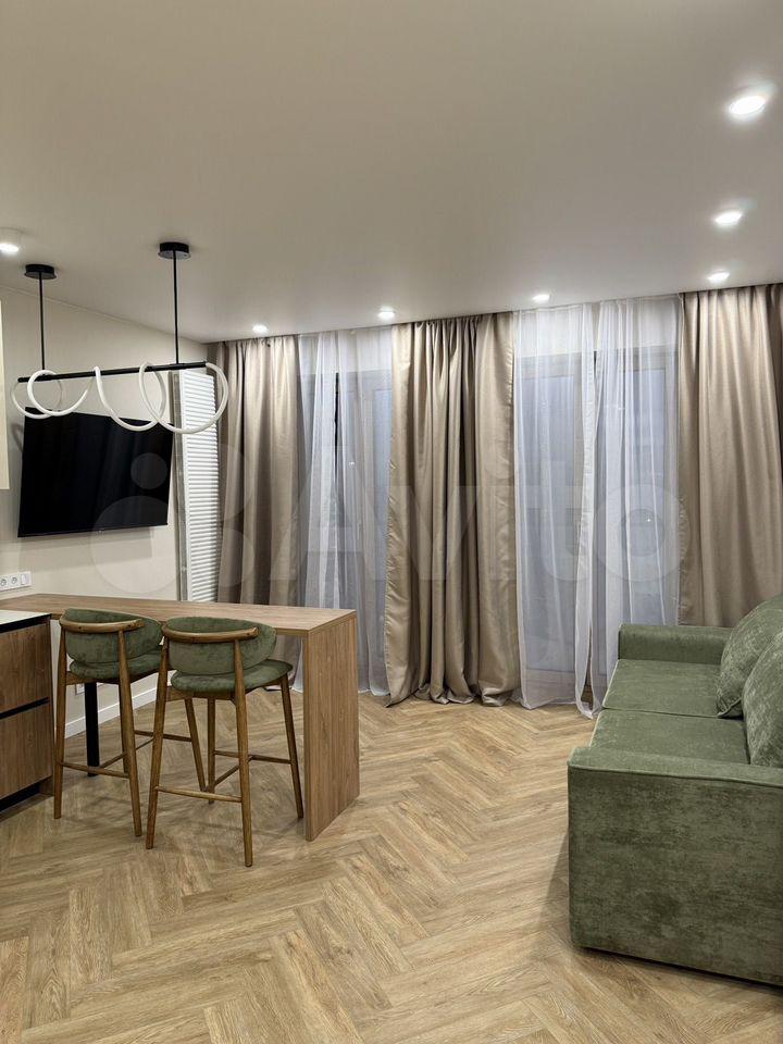 Однокомнатная светлая квартира с кухней-гостиной и панорамными окнами на площади Станиславского.