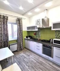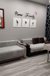 Диван, кухонная мебель, стол, холодильник, микроволновая печь, телевизор. Дополнительная информация: