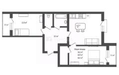 Очень комфортная планировка на две стороны. Два балкона позволят вам наслаждаться видами на улицу и свежим воздухом.