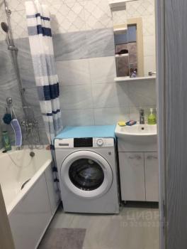 Санузел совмещенный, оборудован ванной и стиральной машиной. Лоджия (11 кв.м) длинной во всю квартиру и выходом из кухни , застеклена, что позволяет использовать ее как дополнительное место для хранения или отдыха.