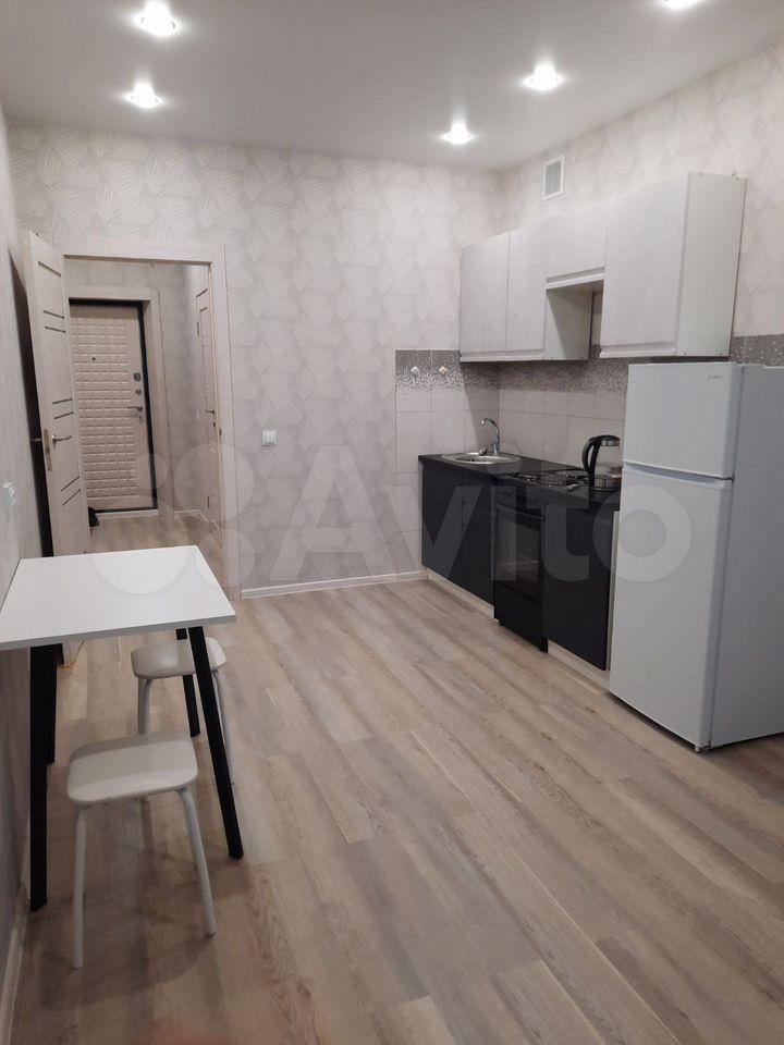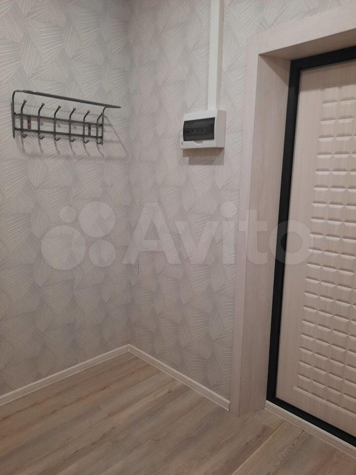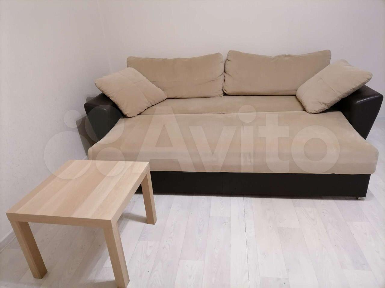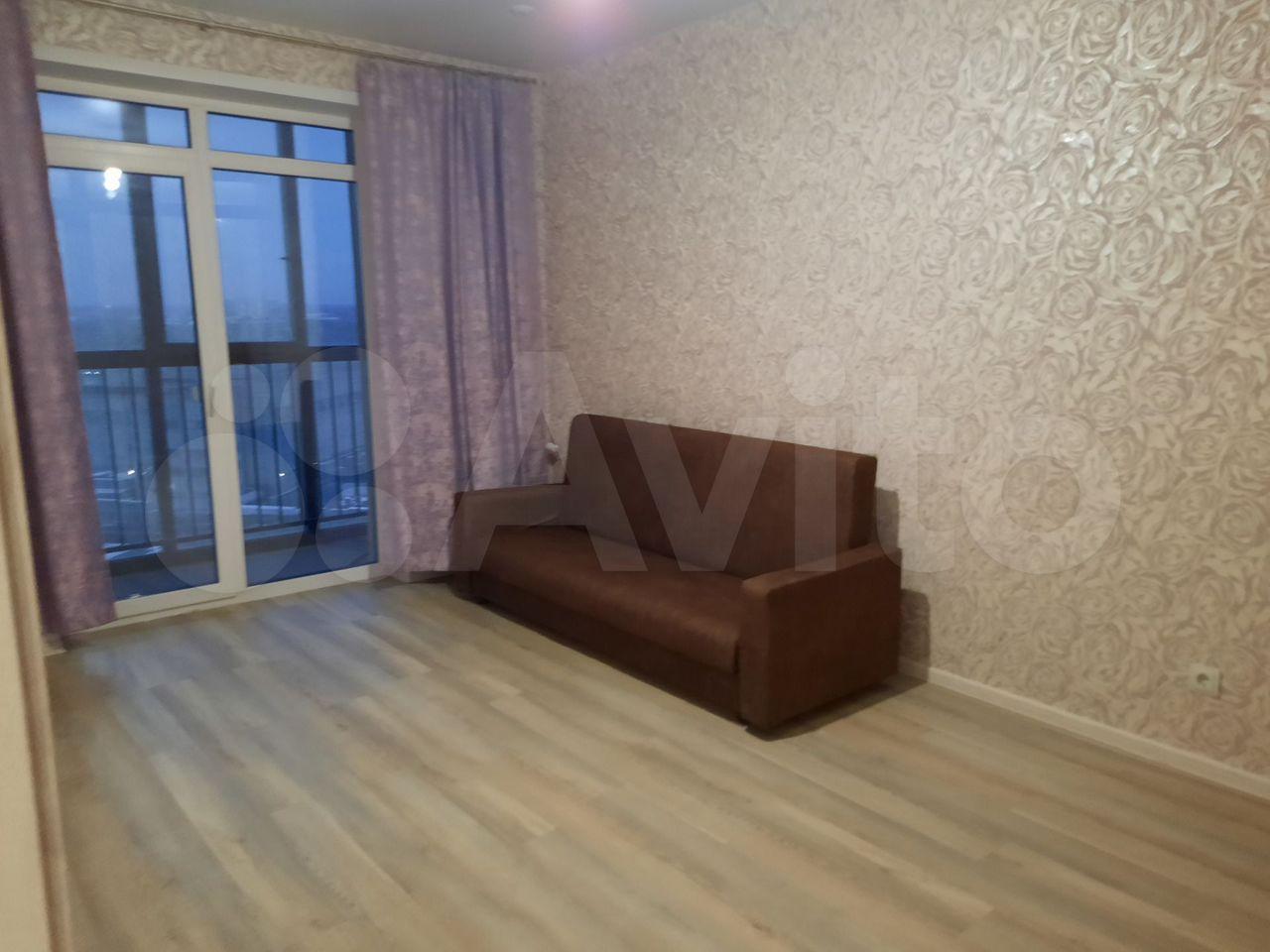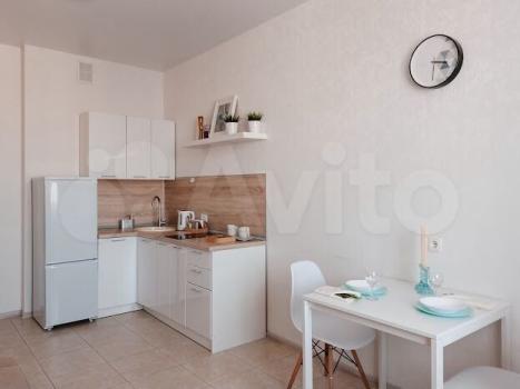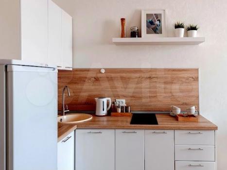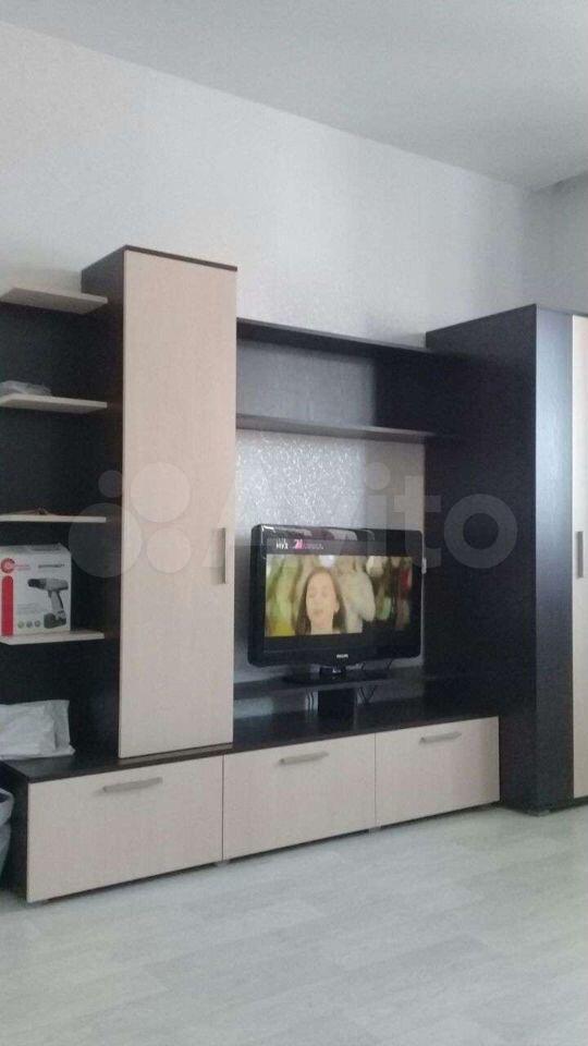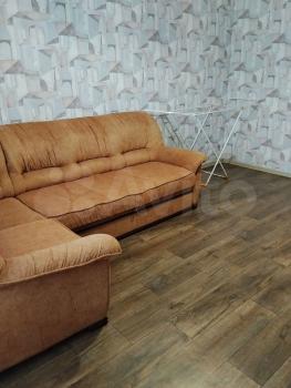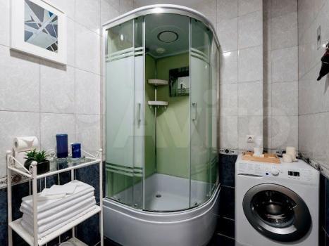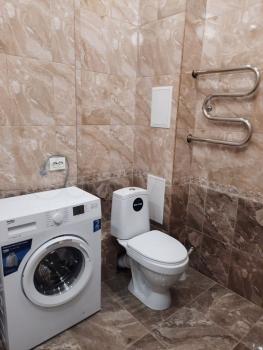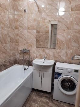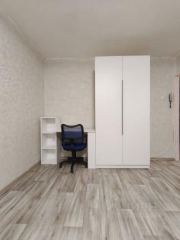 В квартире выполнен свежий евро ремонт. Комната светлая и просторная, оборудована необходимой мебелью: шкафами и диваном. Кухня оснащена всем необходимым — холодильником, плитой и обеденным столом. Санузел совмещенный, с современной сантехникой и стиральной машиной.