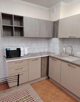 Сдам чистую свежую однокомнатную квартиру 26 квадратов плюс лоджия 7 м2 Из мебели кухонный гарнитур, шкаф, прихожая и шкаф на лоджии, имеется диван, есть стиральная машина, холодильник, плитка, микроволновка.