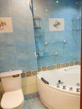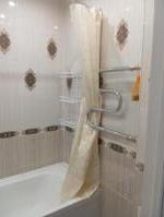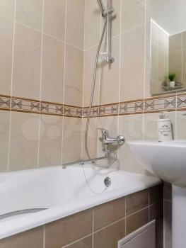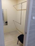 Санузел совмещенный, оснащен ванной и стиральной машиной. В прихожей предусмотрены удобные шкафы для хранения вещей.