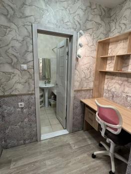 В комнате установлен кондиционер, а также имеется удобный шкаф для хранения вещей. Из мебели — стильный диван, угловой шкаф, 3х метровый вместительный комод и 2х спальная кровать . Санузел раздельный, оформлен современной плиткой.