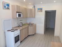 санузел - совмещённый, мебель - кухня, хранение одежды, спальные места, холодильник, плита, микроволновка, стиральная машина.