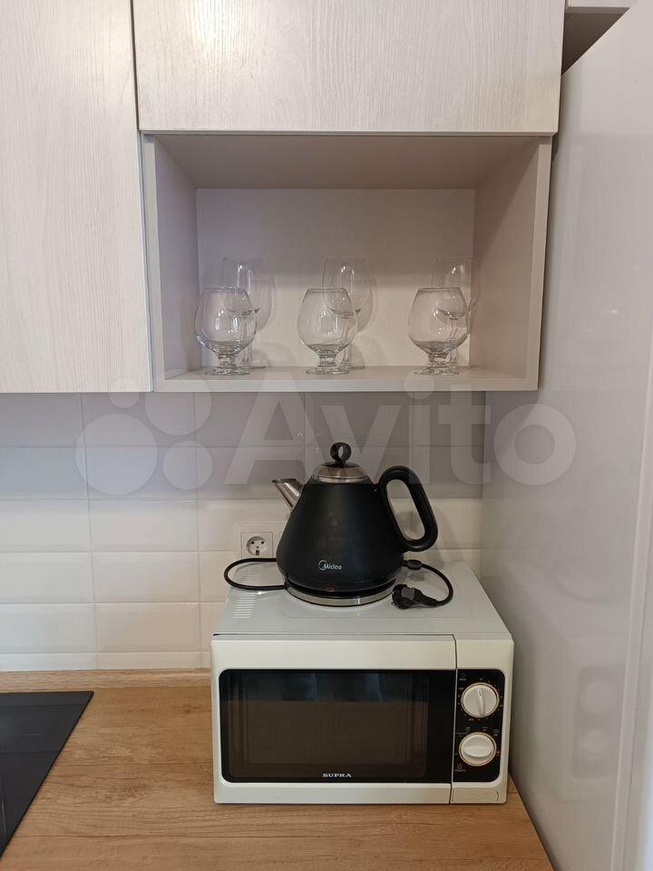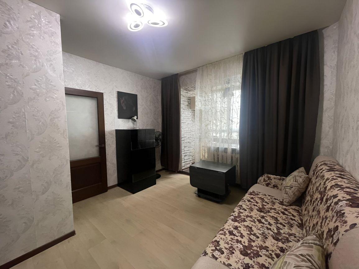 В квартире выполнен косметический ремонт. Просторная кухня оборудована необходимой техникой, включая холодильник и микроволновую печь. В комнате установлен комод и диван, что обеспечивает комфортное размещение двух человек.