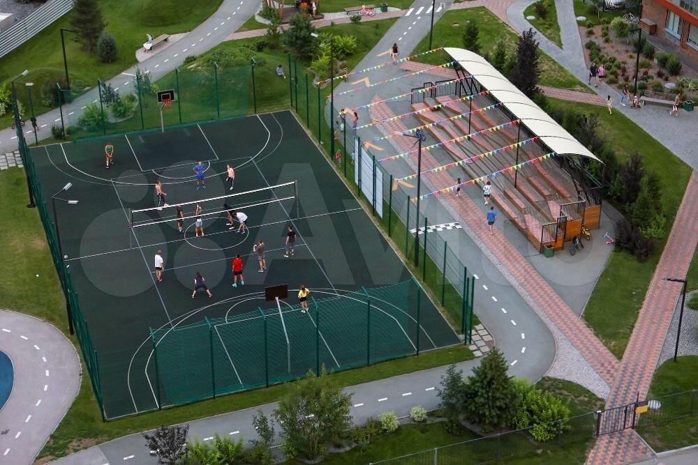 Несмотря на активно развитую инфраструктуру, окна квартиры выходят во двор школы, поэтому автомобилей не слышно, очень тихо и спокойно. Во дворе школы есть недавно построенная спортивная площадка с современным покрытием, отличное место для занятия спортом в летний период (бег, бадминтон, футбол, баскетбол), так же есть спортивные снаряды.