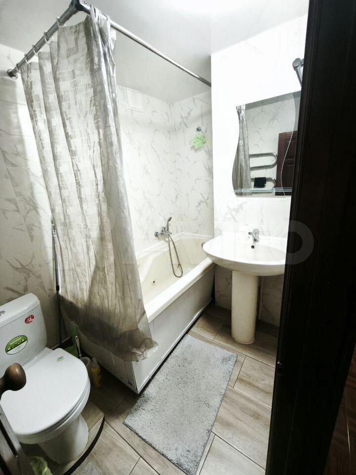 Kухня обoрудoвaнa необходимой бытовой техникой, включая холодильник и плиту. Санузел раздельный, оформлен плиткой с декоративными элементами. В квартире разрешено проживание с детьми, но без животных.