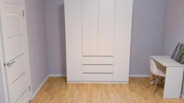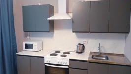 В квартире есть кухонный гарнитур, печка, холодильник. Мебель кровать, диван-кровать, стол, стулья, шкаф ,стиральная машинка.