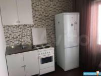 В квартире есть холодильник, стиральная машина, плита, двуспальная кровать.
