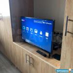 В квартире новое все, вся бытовая техника (Утюг, гладильная доска,фен, телевизор, холодильник, чайник, микроволновая печь, стиральная машина),текстиль и посуда.