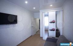 Квартира после ремонта,вся техника и мебель новая на гарантии.Холодильник ,варочная панель,вытяжка духовка стиралка телевизор два дивана шкаф гардероб и шкаф для белья .Двойное пластиковое остекление ,лоджия напольное покрытие плитка пвх .Во дворе дома детская площадка парковка охрана круглосуточное видеонаблюдение .В подъезде два подъёмных лифта колясочные .С торца дома две кофейни, салон красоты ,сопутствующая инфраструктура гипермаркет «Спортмастер»