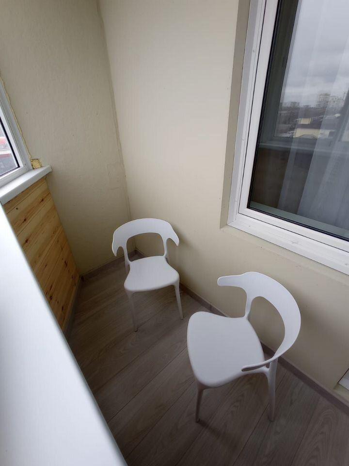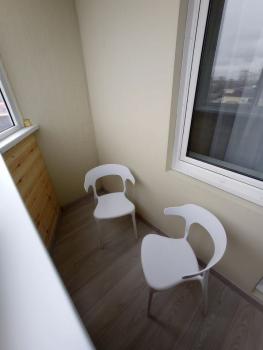 На кухне есть вся необходимая техника: варочная поверхность, микроволновка, чайник. Большая лоджия с отделкой, окна везде пластиковые.