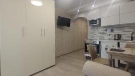 Тёплая уютная студия, есть холодильник, плита, микроволновка, телевизор. ...