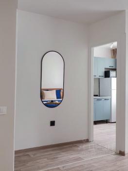Квартира оснащена новой техникой и мебелью, а именно стиральной машинкой и чайником марки Candy, микроволновой печью и холодильником beko, плитой kitll, двуспальной кроватью 160*200 с новым ортопедическим матрасом, вместительным шкафом, рабочим столом со стулом, обеденный столом с двумя мягкими стульями. Кухонный гарнитур и вся сантехника так же новые и современные.