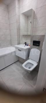 В квартире сделан евроремонт, поэтому все выглядит современно и стильно. Комната и кухня обставлены мебелью, что позволяет сразу же заселиться. В наличии вся необходимая техника: холодильник, телевизор и стиральная машина. Санузел совмещенный, с ванной.