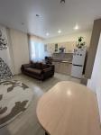 Уютная квартира в новом теплом доме . В квартире есть все для жилья : кухонный гарнитур , духовой шкаф , микроволновка , мультиварка , диван , стиральная машина , шкаф, 2 стола , стулья .