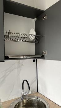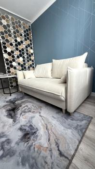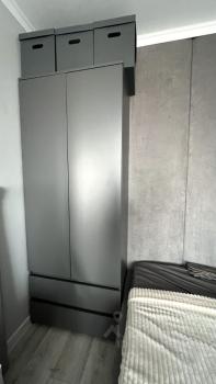 Мебель: кровать с мягкими стеновыми панелями, с подъемным механизмом и большим местом для хранения, матрас 160х200см, шкаф платяной (80х200см) с двумя выкатными ящиками, комод из натурального дерева, диван раскладной в стиле сканди (спальное место 120х190см), кухонный гарнитур, круглый стол, два стула, выкатная этажерка.