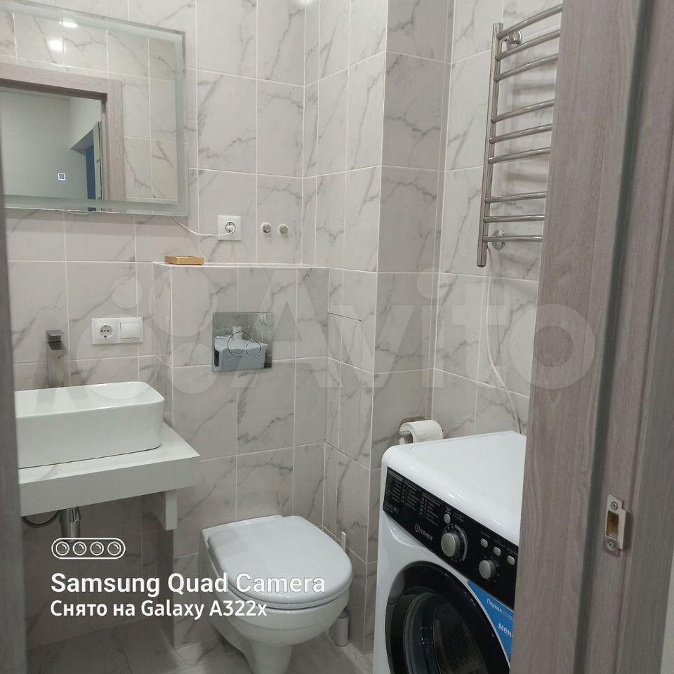 Санузел совмещенный, оборудован ванной и стиральной машиной. Из окон открывается вид на закрытую территорию двора, где расположена спортивная площадка. Для удобства жильцов предусмотрены пассажирский и грузовой лифты.