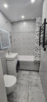 В квартире выполнен качественный ремонт. Комнаты полностью меблированы, есть гардеробная , кухня оснащена мебелью и необходимой техникой: холодильник, телевизор, стиральная машина. В ванной комнате установлена ванна, а санузел совмещённый.