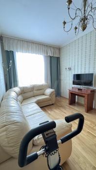 В квартире свежий современный ремонт, просторная прихожая, две изолированные комнаты и большая кухня-столовая 16 кв.м. Есть вся необходимая мебель (два дивана, столы, кресла, шкафы и прочее). Скоростной Wi-fi. Бытовая техника (плита, холодильник, стиральная машина, микроволновка, чайник, утюг). Ламинат, натяжные потолки, плитка. Современная сантехника, удобная ванна, изолированный санузел. Большой балкон.