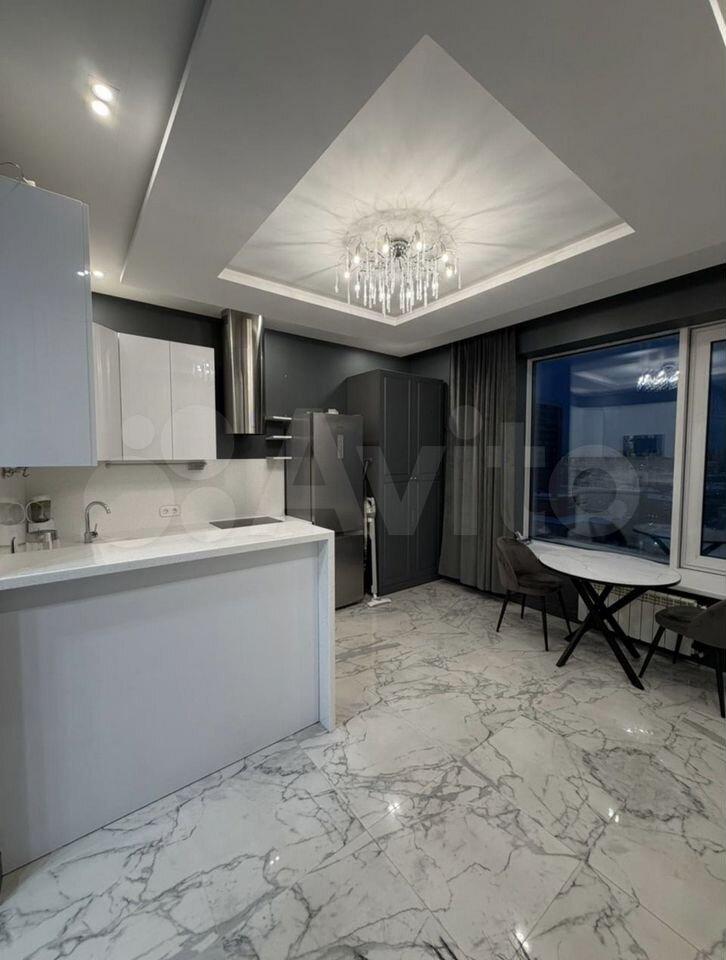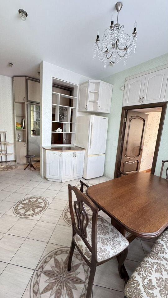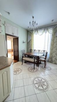 Кухня: 15 кв.м., столешница из камня, абсолютно новая посудомоечная машина, духовой шкаф, хорошая варочная поверхность АМG, вытяжка на улицу, пол с подогревом, выход на балкон, раскладной стол до 8 человек, кухонный остров, холодильник, много пространства для хранения.