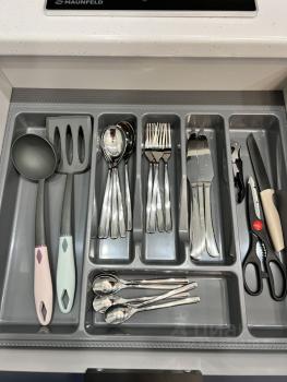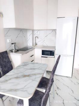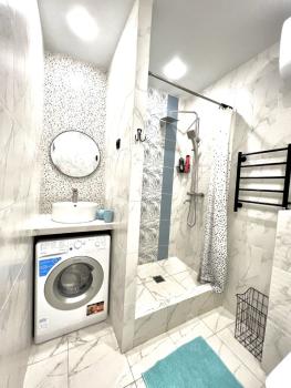 В квартире есть всё необходимое для комфортного проживания: современная мебель в комнате и на кухне, кондиционер, холодильник, посудомоечная и стиральная машины.
