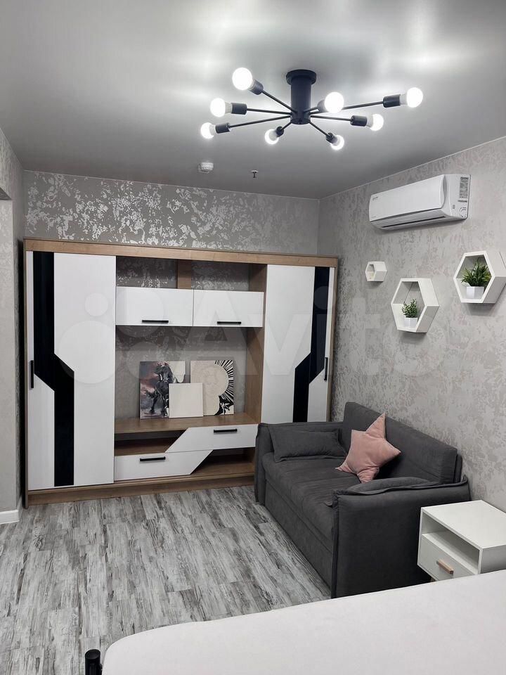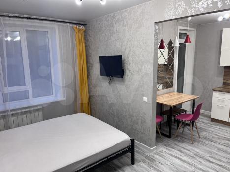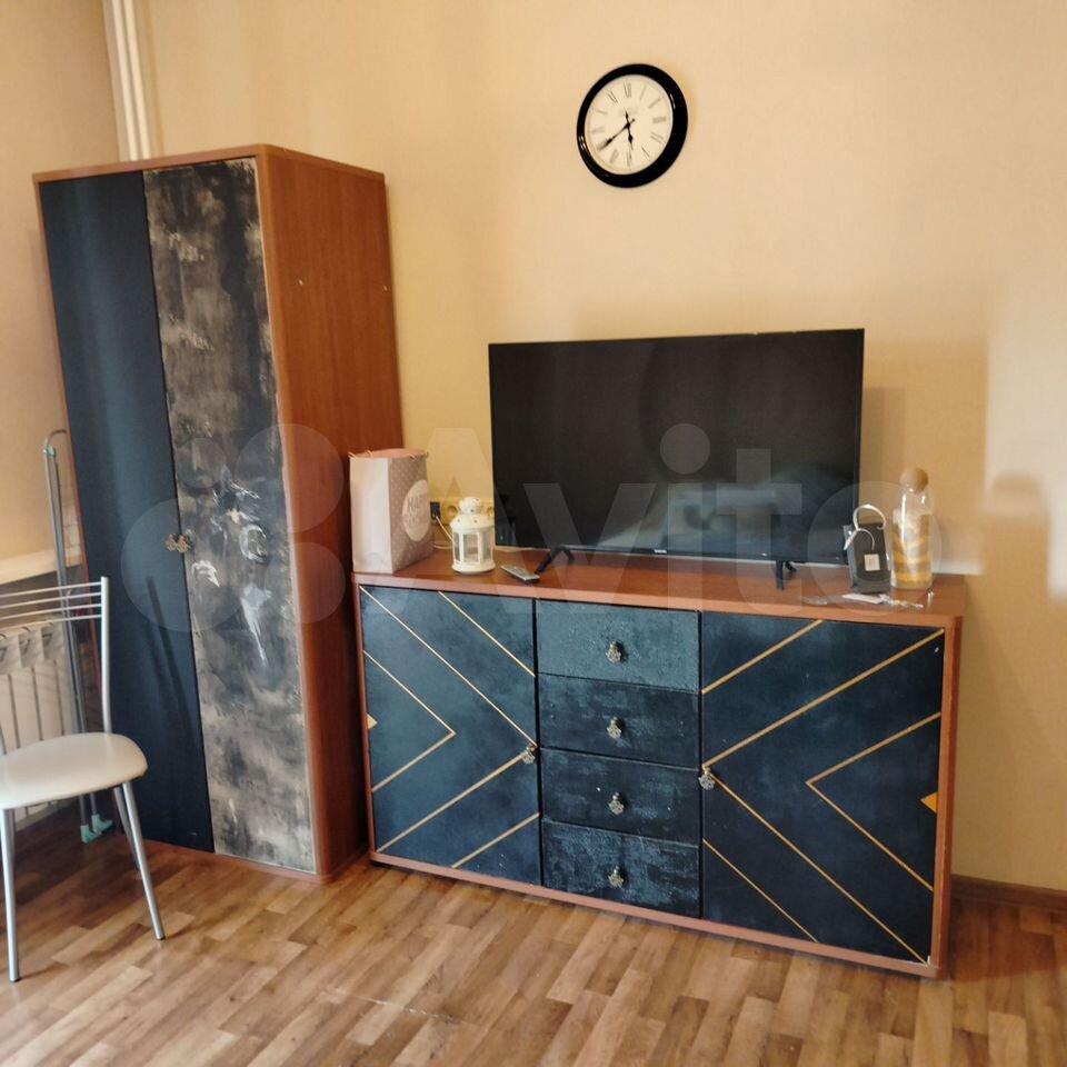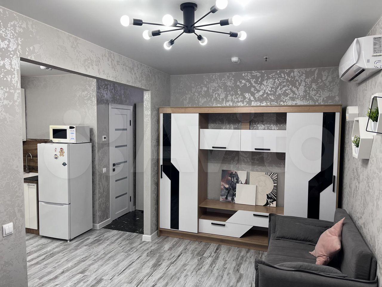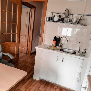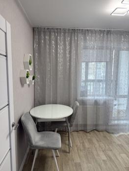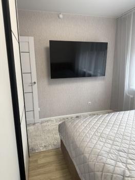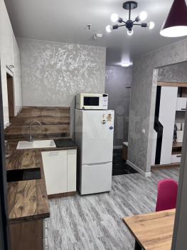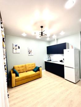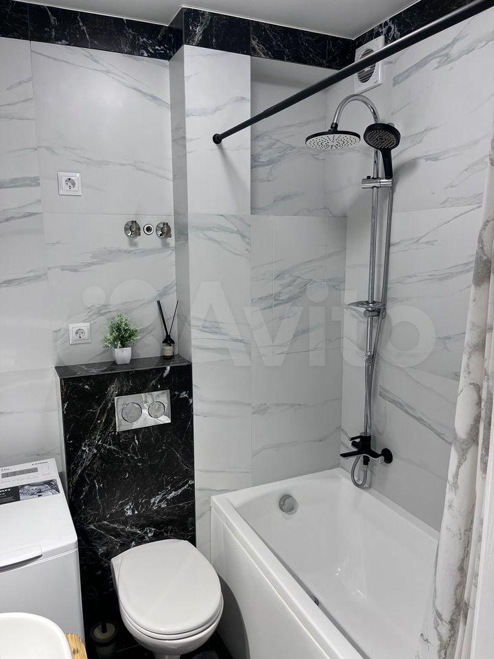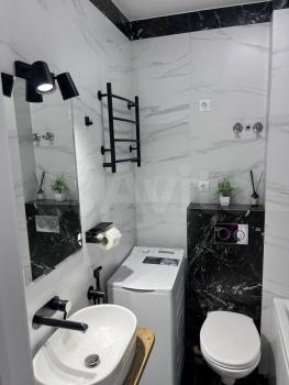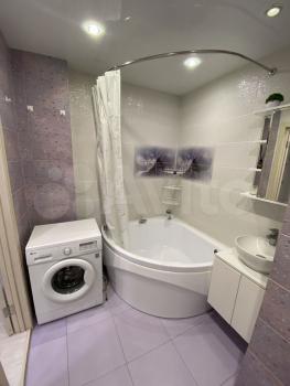 Квартира с евроремонтом, готова к проживанию. Комнаты меблированы, в кухне есть все необходимое: холодильник, телевизор и стиральная машина. Кухонная зона компактная, площадью 5 кв. м, но функционально обустроена. Санузел совмещенный, в ванной комнате установлена ванна. Окна выходят во двор, что обеспечивает дополнительную тишину и уют.
