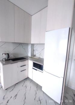 В квартире сделан евроремонт, что создаёт уютную атмосферу. Кухня площадью 10 кв. м оснащена всей необходимой мебелью и техникой, включая холодильник и стиральную машину. В комнате также есть мебель, а в ванной комнате установлена ванна. Совмещенный санузел обеспечивает комфортное использование пространства.