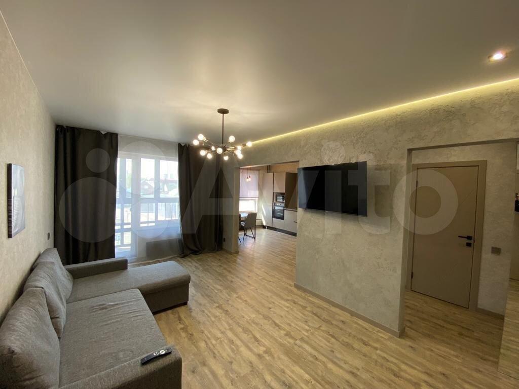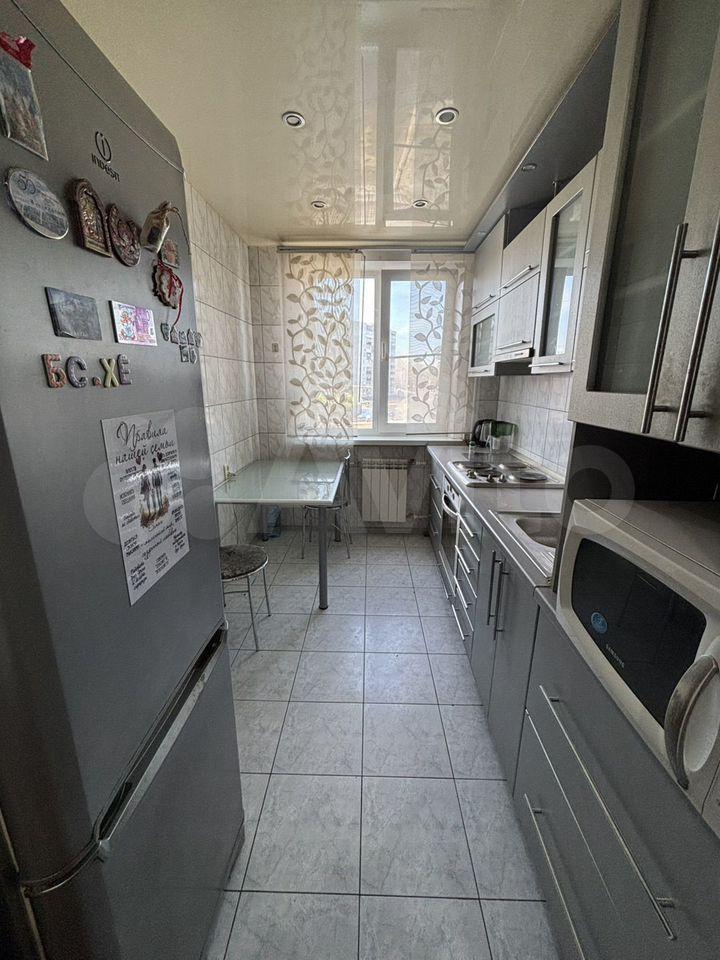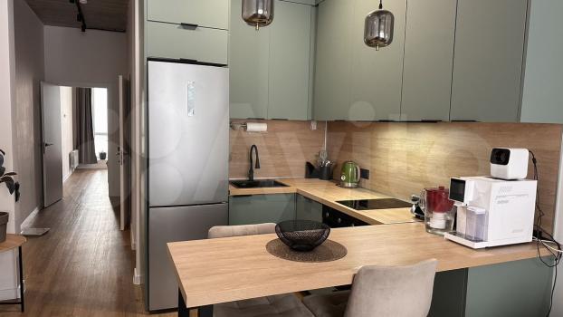 В квартире выполнен косметический ремонт. Комнаты изолированные, что обеспечивает комфорт и приватность. В гостиной установлен диван и телевизор. На кухне площадью 12 м² имеется вся необходимая бытовая техника, включая холодильник и плиту. Также предусмотрены шкафы для хранения вещей.