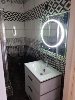 Санузлы: 6 и 3 кв.м., большой совмещенные санузел с огромной ванной и цветной подсветкой на потолке, пол с подогревом. В гостевом санузле стоит водонагреватель (горячая вода на основную ванную), большая стиральная машина Sаmsung, дорогая сантехника и санфаянс.