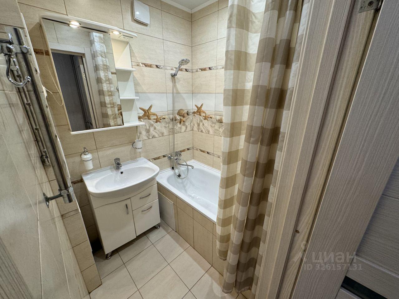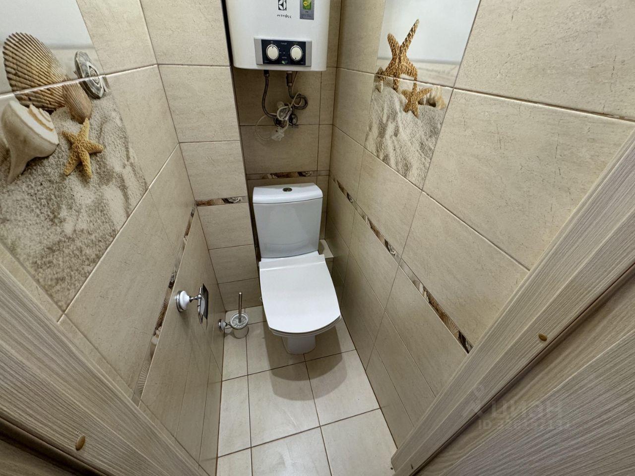 Санузел совмещенный, выполнен в светлых тонах с качественной отделкой. В квартире также есть гардеробная для удобного хранения вещей.
