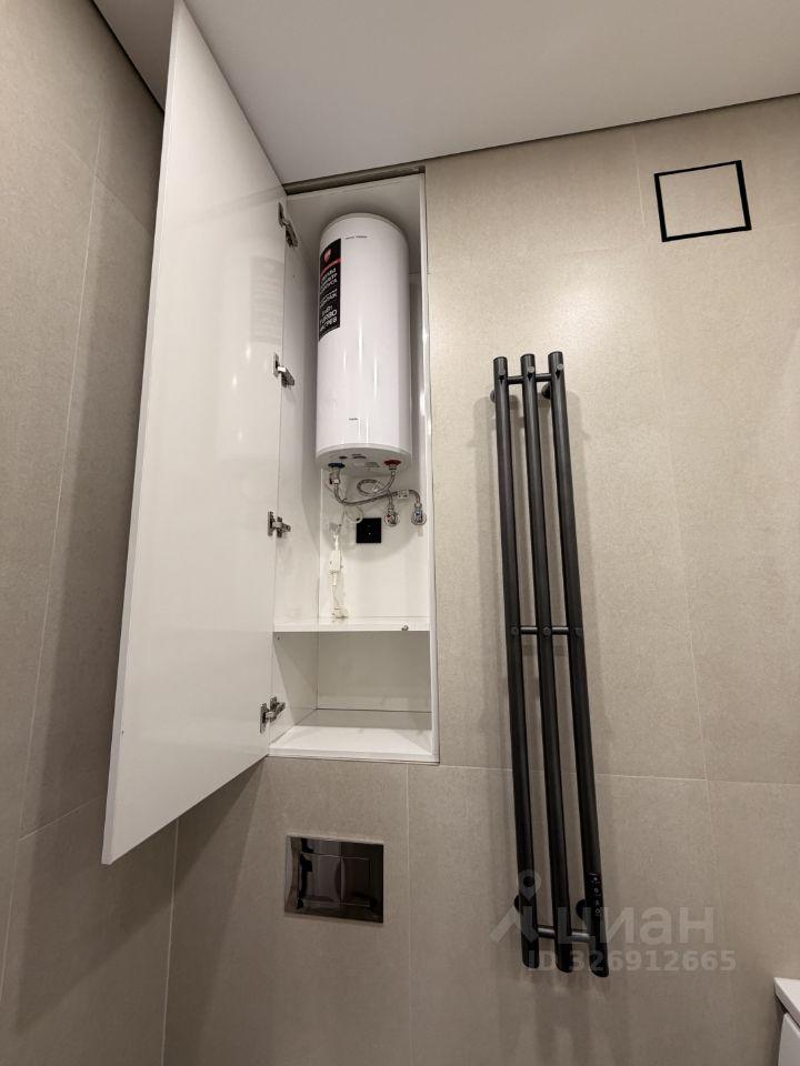 Ванная комната оснащена стиральной машиной и накопительным водонагревателем.