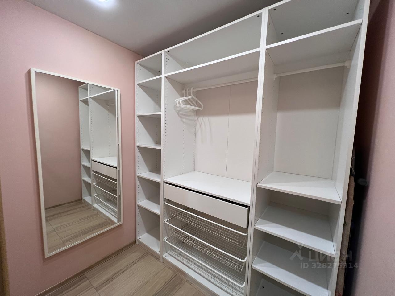 ?В спальне просторная гардеробная- мечта любой девушки и рабочая зона.