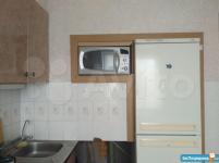 На кухне есть холодильник, плита, микроволновка, стиральная машина.