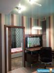 Комнаты изолированные. В каждой комнате кондиционер. Большая кухня- гостиная с выходом на застекленную лоджию (раскладной диван, комод, обеденная группа). Кухня с встроенной бытовой техникой (холодильник, духовка, варочная поверхность, система очистки воды). Натяжные потолки, многоуровневое освещение.