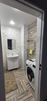 Стиральная машинка-автомат в наличии, подключена, настоящий немецкий Бош! Канализация заменена на все свежее. Сантехника хорошая, все отопление свежее, краны на кухне, подводка, смеситель - все новое.