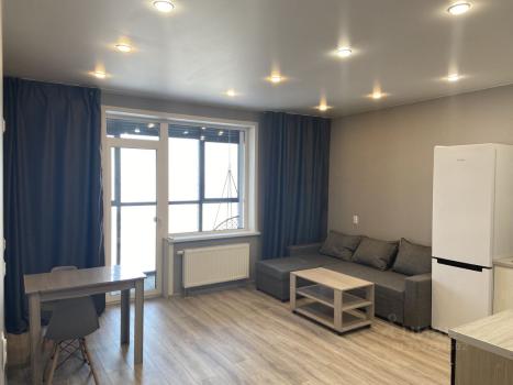 Сдается современная абсолютно новая двухкомнатная студия на верхнем 25-м этаже. В квартире никто не ...