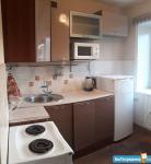 В квартире имеется всё необходимое: диваны, шкафы для одежды и посуды, электроплита, микроволновка, холодильник, встроенная стиральная машинка.