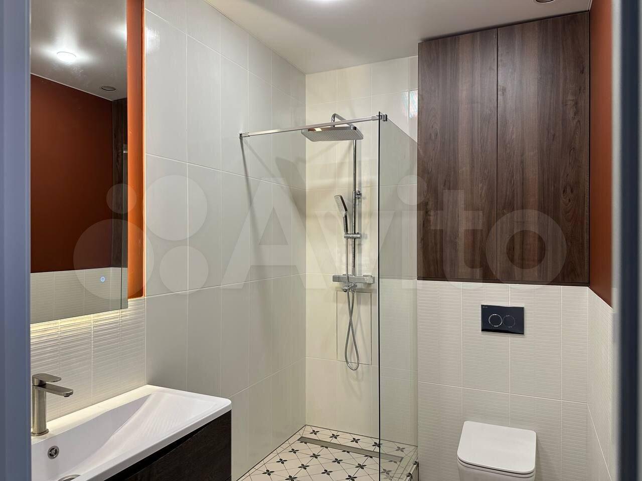 Ванная комната: стиральная машина, новый подвесной унитаз, 2 зеркала с отдельным освещением, бойлер 80л.