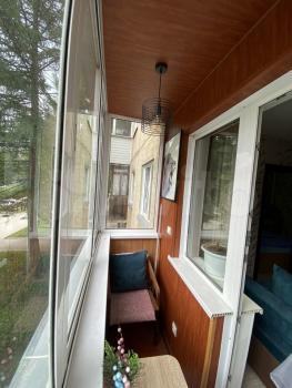 Приятный балкон где летом вы можете отдохнуть и насладится чашечкой чая .