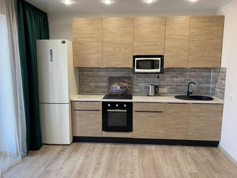 В аренду сдается светлая и просторная двухкомнатная квартира общей площадью 63 квадратных метра, с объединённым залом и кухней. Абсолютно новый ремонт. Прекрасный, живописный вид на весь город, имеется большой балкон. В квартире созданы все условия для комфортного проживания: большая двуспальная кровать, вместительный шкаф, обеденный стол, холодильник, встроенная варочная поверхность и духовой шкаф, стиральная машина, микроволновка, электрический чайник и посудомоечная машина. За сохранность мебели и техники взимается депозит в размере 58000 рублей. Лоджия застеклена.