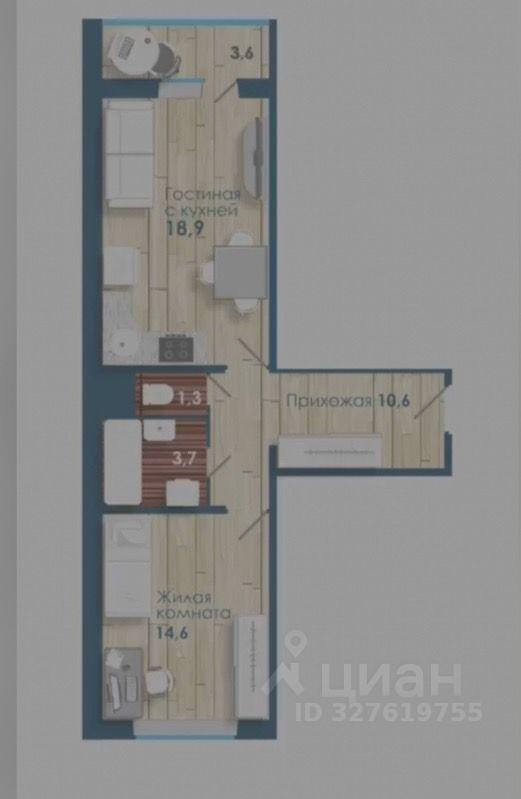 2-к квартира, 53.8 м²40 000 р.