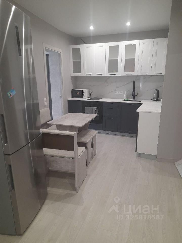 В квартире выполнен косметический ремонт. Просторная комната оборудована мягкой мебелью, спальня имеет большую кровать и фкаф-купе. Из техники есть холодильник и стиральная машина. Кухня оснащена всем необходимым для комфортного приготовления пищи.